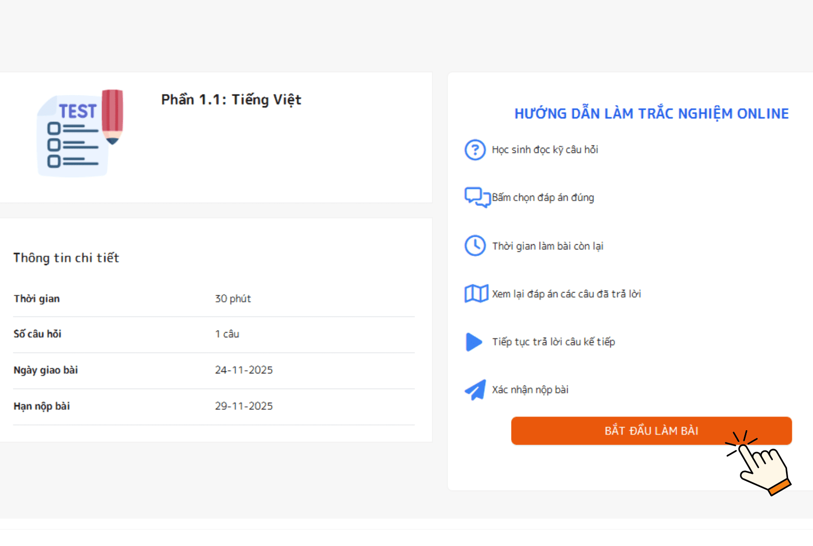 • Bước 3: Thực hiện bài tập, chọn đáp án và nộp bài theo thời gian quy định.