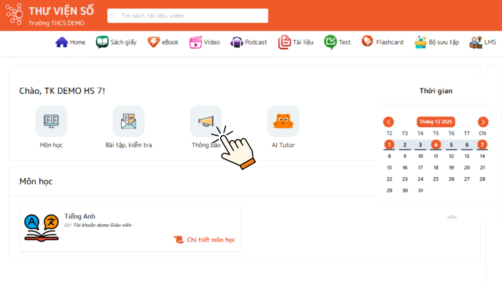 Hệ thống quản lý học tập LMS trên nền tảng Thư viện số DLibK12 hỗ trợ học sinh học tập trực tuyến, làm bài tập, kiểm tra kiến thức và theo dõi tiến độ học tập cá nhân. Hệ thống tích hợp đầy đủ tài liệu, bài học, bài tập và các thông báo từ giáo viên, giúp học sinh quản lý việc học một cách thuận tiện và hiệu quả.