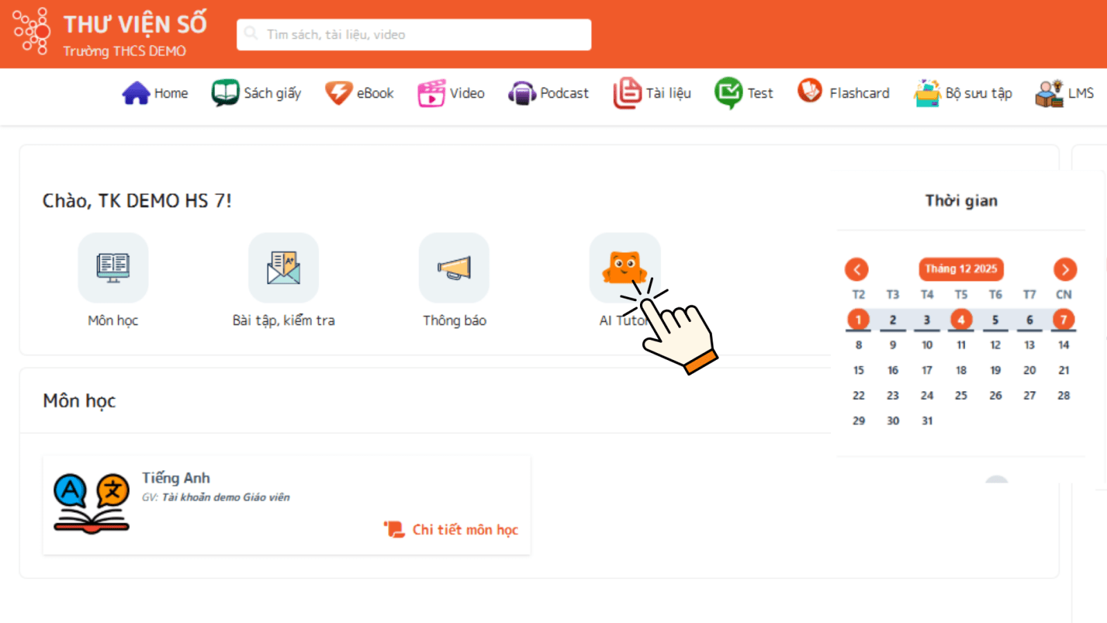 Ngoài ra, hệ thống LMS cho phép học sinh ôn luyện kiến thức mọi lúc, mọi nơi thông qua các bài học và bài tập điện tử. Khi gặp khó khăn, học sinh có thể sử dụng công cụ AI Tutor để đặt câu hỏi và nhận được hỗ trợ nhanh chóng, chính xác.